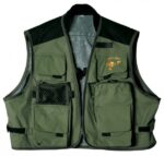 Το γιλέκο αλιείας έχει δεκατρείς τσέπες, εκ των οποίων δύο στο εσωτερικό και δύο στην πλάτη. Μια πρόσθετη, μεγάλη τσέπη βρίσκεται στο εξωτερικό του γιλέκου. Το κατώτερο τμήμα του γιλέκου έχει πέλματα και η επένδυση είναι δικτυωμένη που βελτιώνει την ανταλλαγή αέρα. Δύο συνδετήρες σε ελαστικά καλώδια θα επιτρέπουν την σύνδεση του εξοπλισμού αλιείας, τα τριπλά συστήματα Velcro στις τσέπες θα προστατεύουν αποτελεσματικά πολύτιμα αντικείμενα από το να χαθούν.