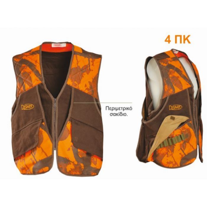 Γιλέκο κυνηγίου σε χρώμα παραλλαγής πορτοκαλί και καφέ από την Dispan.